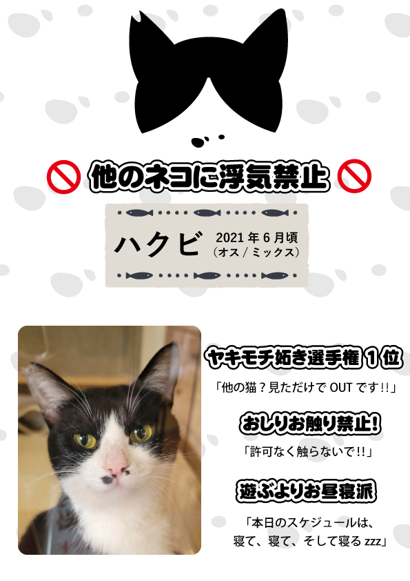 | 好きなことや好きなもの | ハチワレの中心部をなでなでしてもらうこと |