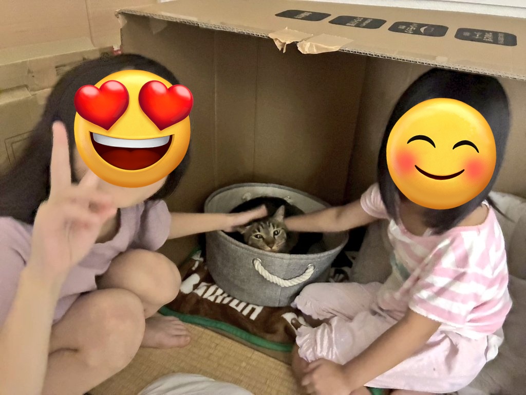 手作りの段ボールハウスも最高です!!上手に作られています。