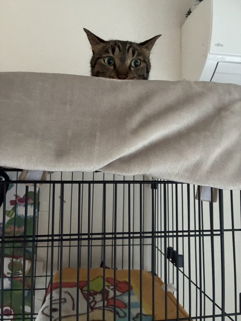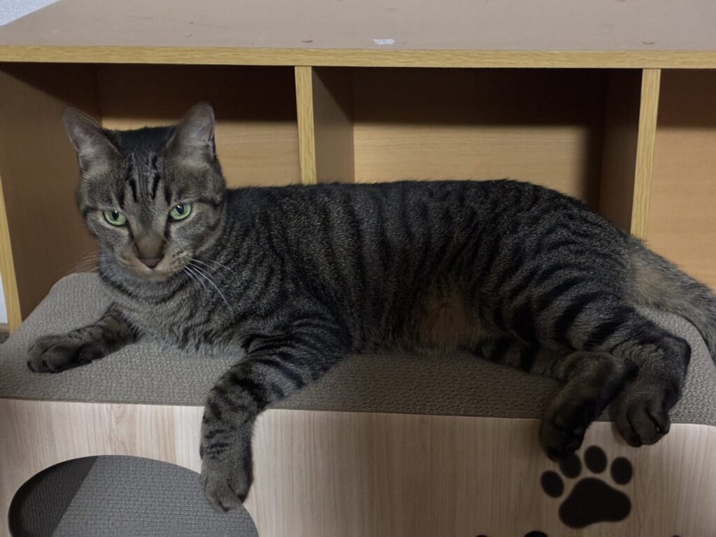最近では人のお布団の上で一緒に寝たり大好きなキャットウォークの上で寛いでいるそうで、